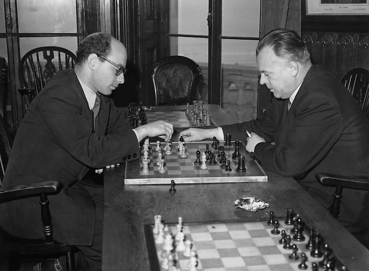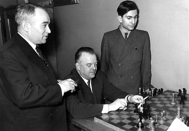 Толуш всегда был максималистом. Пока у него оставались хотя бы малейшие ресурсы для атаки, других путей он не признавал! Поэтому и тут на доске – староиндийская, взаимные и яростные атаки на разбросанных по разным флангам королей, в которой Михаил был чуть быстрее. Толуш первым поздравил нового чемпиона СССР, и тихо покинул сцену. Его обошли и Таль, и Бронштейн, и выигравший в последнем туре Керес. Он же встал вровень со Спасским. Играющий как мальчишка тренер и куда более солидный его ученик.