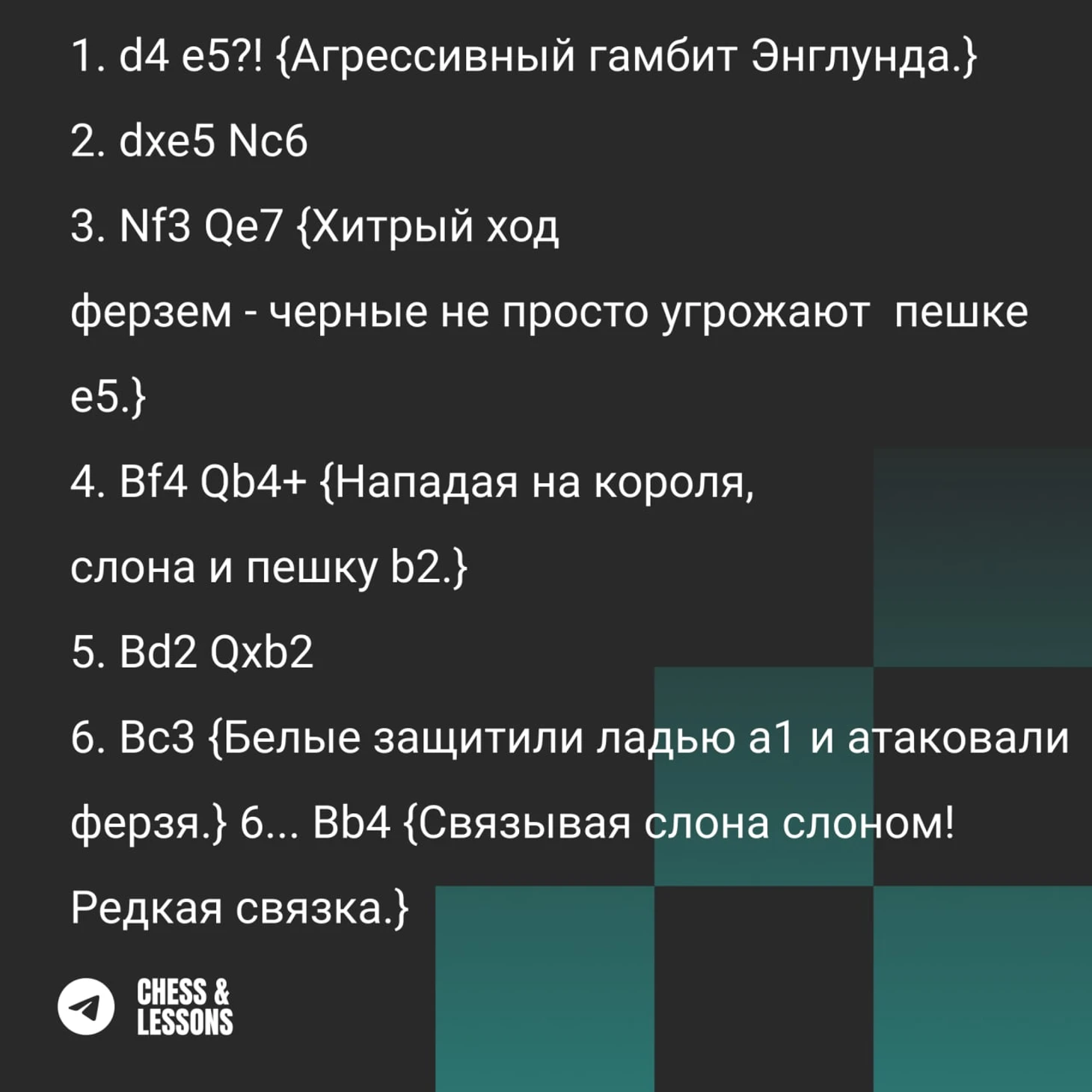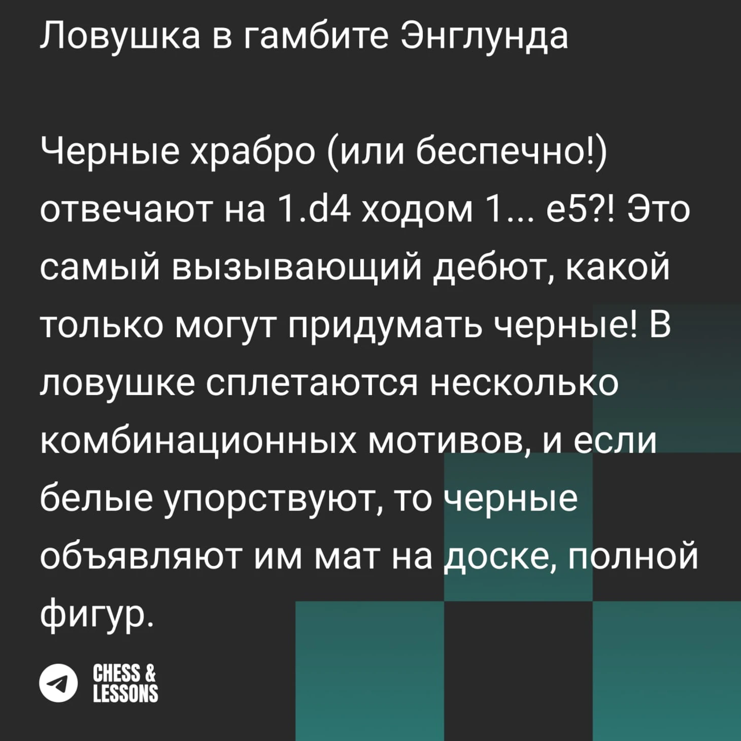 Рассмотрим с вами дебютную ловушку в гамбите. Энглунда.