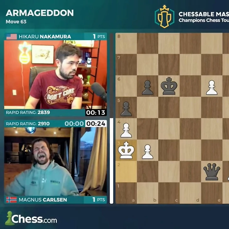 Чемпион мира по шахматам Магнус Карлсен проиграл на онлайн-турнире Chessable Masters Хикару Накамуре, неправильно кликнув по фигуре мышкой.