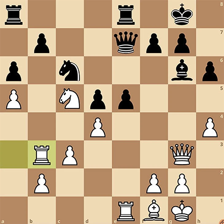 Китаец допустил неточность и пошел Лb3 вместо b4. Там можно было зафиксировать структуру, зафиксировать сильного коня на с5 с давлением на b7. Эта позиция была бы близка к выигранной. Но Дин сделал ход Лb3, который привел к размену сильной пешки а5 – и борьба вышла из-под контроля.