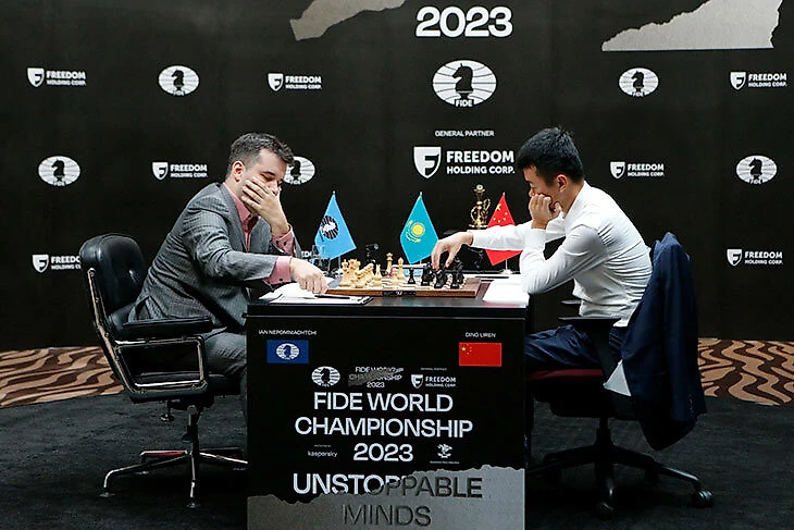 Ян Непомнящий и Дин Лижэнь уже в середине матча за шахматную корону – пока лидирует россиянин (4:3). Из семи сыгранных в Астане партий вничью завершились только две. В пятой победу одержал Непомнящий, в шестой китаец отыгрался, а в седьмой Ян вновь оказался сильнее.