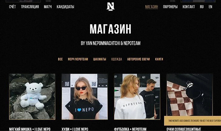 Арнацкая в разговоре со Sports.ru подтвердила, что ни она, ни Ян не имели отношения к подготовке этой позиции. Тем не менее, Nepo Team – вполне официальный ресурс в поддержку Непомнящего. Он имеет собственные соцсети, публикует трансляции матча и даже продает мерч: можно приобрести, например, худи I love Nepo за 4000 рублей или кожаный бомбер с аппликациями на тему шахмат за 120 000.