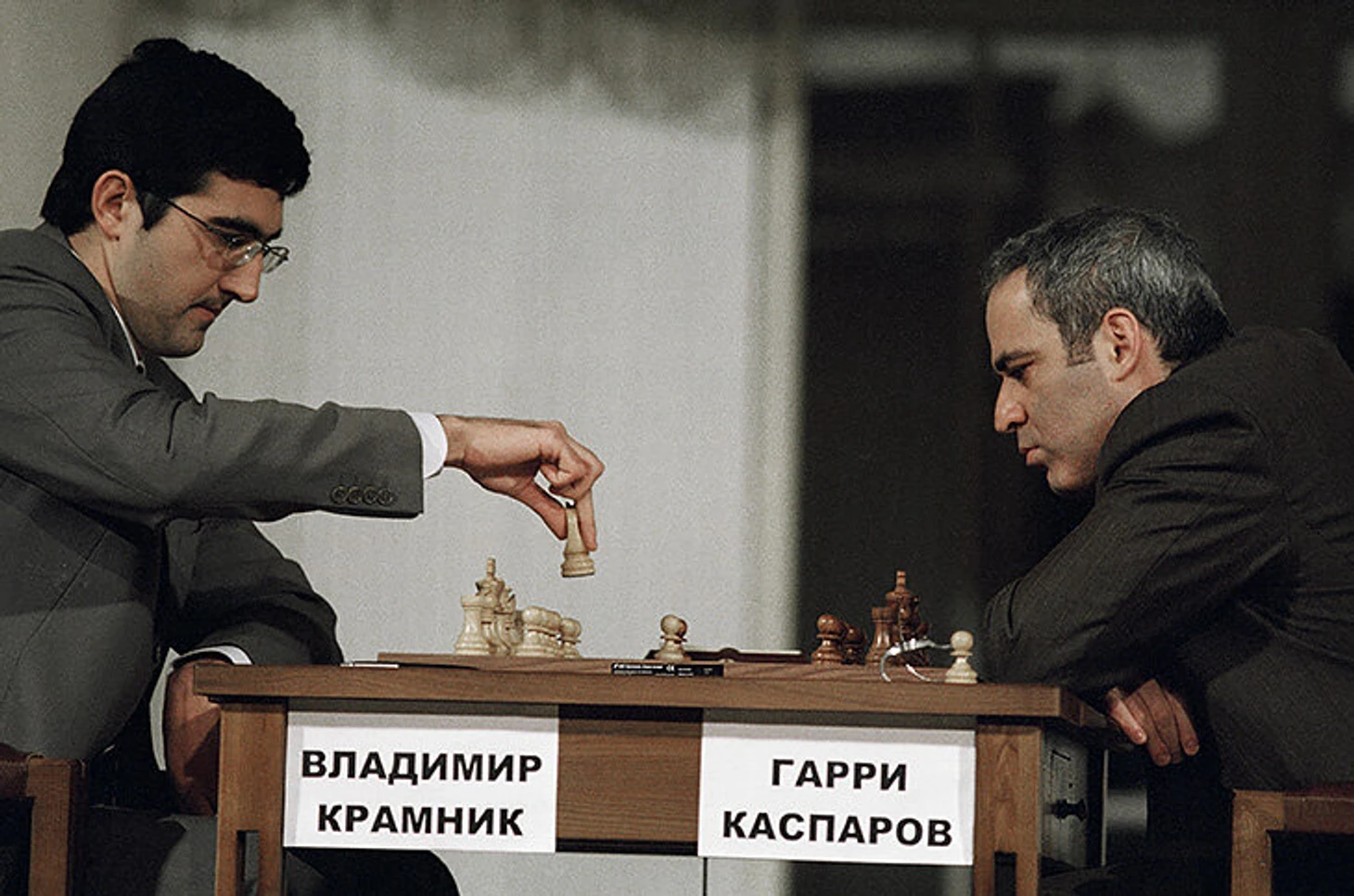 Одновременно в мире было два чемпиона мира. 7 лет в обеих версиях царили российские шахматисты: сначала Каспаров и Карпов, потом Каспаров и Халифман. Титул по версии ПША (после распада организации – по классическим шахматам) и вовсе удерживали только наши: Каспаров и Владимир Крамник.