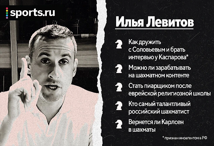 Но главное: у Левитова – всегда интересный взгляд на шахматы и небанальная биография. Он никогда профессионально не играл, при этом 4 года руководил Российской шахматной федерацией, дружит с телеведущим Владимиром Соловьевым и записал 50 часов интервью с Гарри Каспаровым (признан иноагентом в РФ).