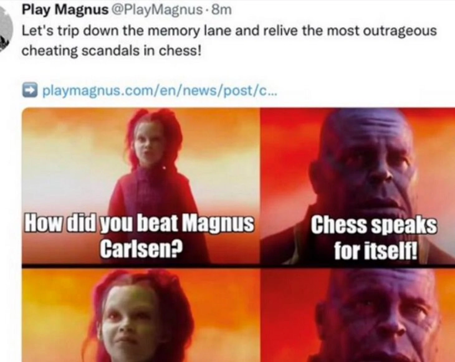 Ниманн атакует Карлсена из-за мема с Таносом из «Мстителей» – на кону $100 млн. Да, это не шутка!