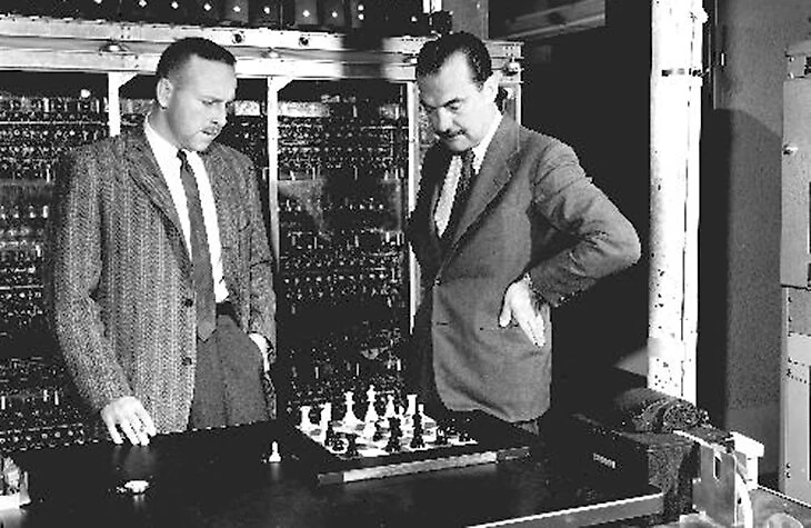 В 1952-м появился первый шахматный компьютер – MANIAC I: с помощью алгоритма MiniMax машина выбирала лучший из ходов. Программа родилась в ядерной лаборатории Лос-Аламоса, над ней работал американский математик и физик Николас Метрополис, который до этого сотрудничал с командой Роберта Оппенгеймера при создании ядерного оружия.