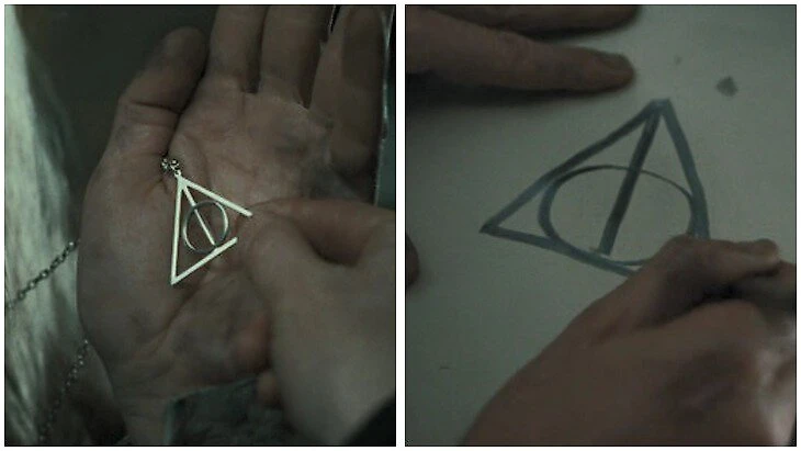 На первый взгляд похоже на знак Даров Смерти из серии романов и фильмов про Гарри Поттера.