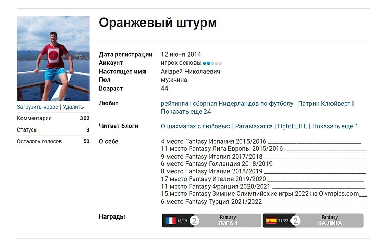 Кстати, из-за пристрастия к футбольной Голландии на sports зарегистрирован под ником «Оранжевый штурм».