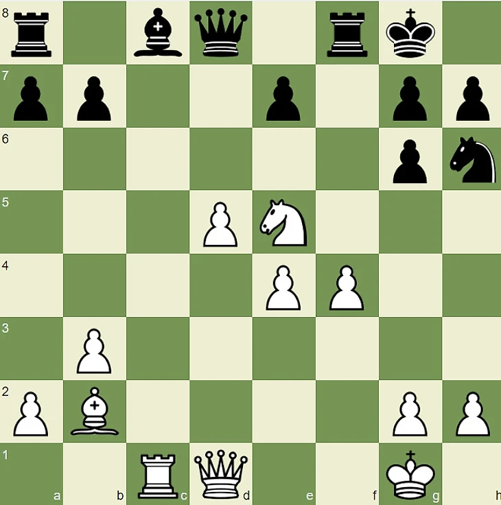 Ферзь — главная атакующая сила, ближе к миттельшпилю его нужно продвигать ближе к королю соперника.