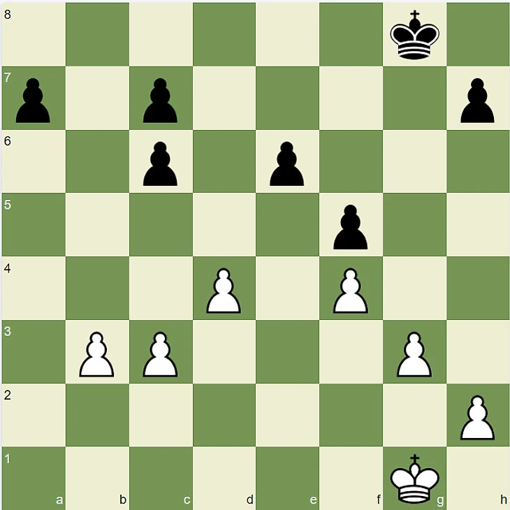 Помимо неудачно расположенных фигур слабыми позициями считаются, когда существуют слабые поля, особенно рядом с королем. Их могут занять фигуры соперника и создавать угрозу. Еще один недостаток — наличие слабых пешек. Перед вами еще один пример. У белых есть две ровные линии пешек, где одна страхует другую. У черных пешки не развиты, а две из них располагаются на одной вертикали, то есть пешка на с7 практически не участвует в игре.