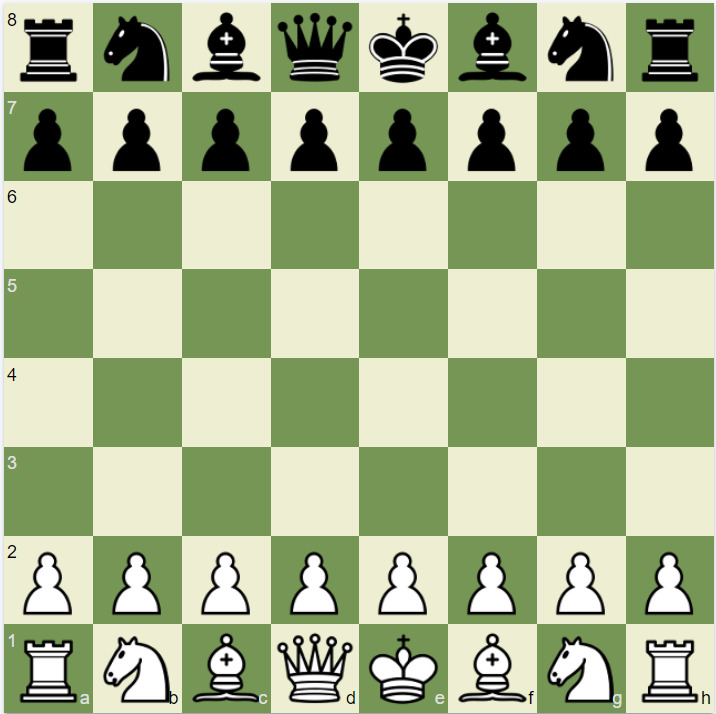 Теперь расставим все фигуры на доске и подробно расскажем о каждой, где она находится изначально, как ходит, какое имеет значение и возможности. Черные и белые выстроились друг против друга как два войска. Дальше объясняем все про фигуры и ходы.