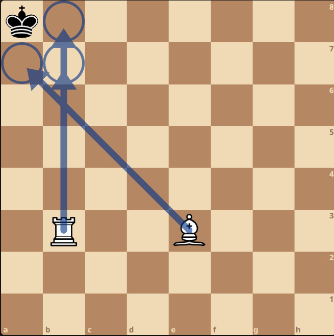 Шах — это угроза королю, которой он может избежать. Еще один пример, белая ладья сделала ход на е1 и объявила шах черному королю. В отличие от предыдущей ситуации у короля есть два варианта: