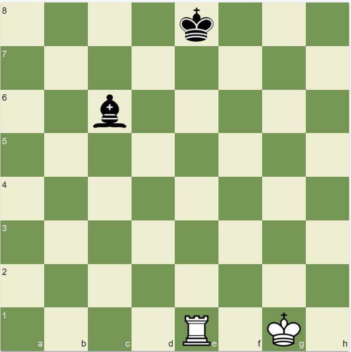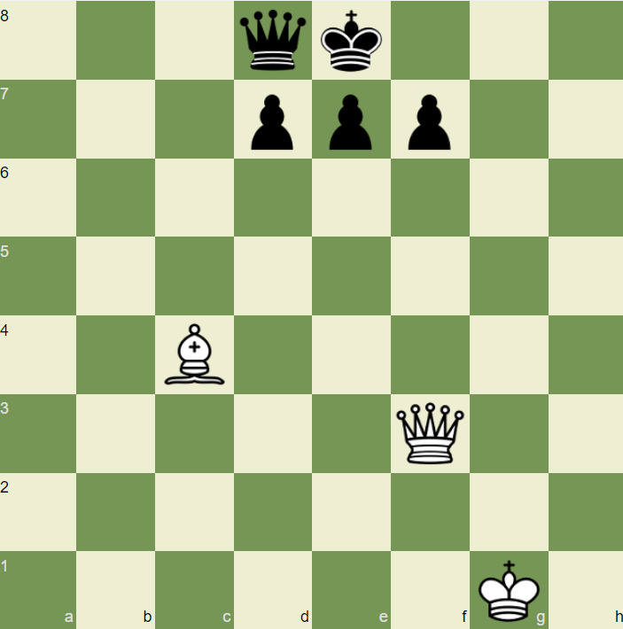 После хода белых королю черных совершенно некуда пойти, везде он находится под угрозой. В этой ситуации объявляется ничья.