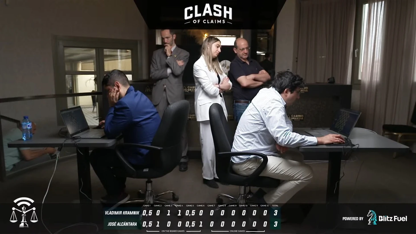 Jospem уверенно набирал очки в онлайне и обеспечил себе итоговую победу. Но даже сокращенный формат они не доиграли: за тур до конца Крамник уронил флаг в выигрышной позиции, так как на его экране не отображался ход противника. Результат этой партии отменили, а концовку решили вообще не проводить. Итоговый счет – 14,5:11,5 в пользу Мартинеса.