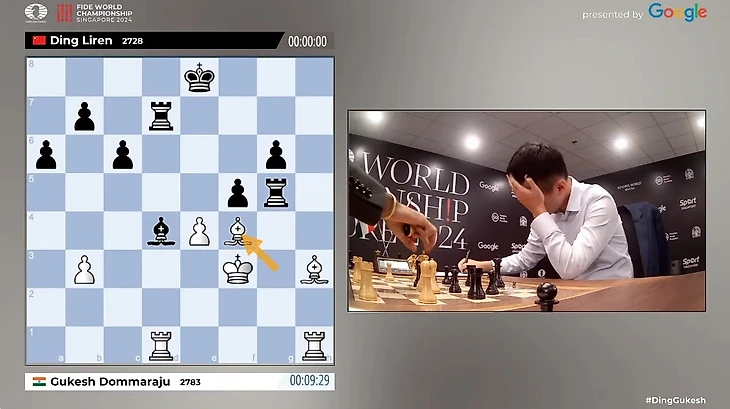 Но в третьей что-то пошло не так. Он явно уступал Гукешу и загнал себя в цейтнот – ситуацию, когда у шахматиста не остается времени на раздумья. В таких серьезных матчах подобное встречается довольно редко, но китаец выделился и тут.