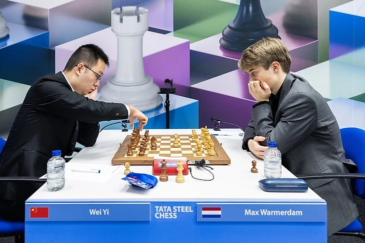 На +1 вышел и Вэй И, в затяжной партии одолевший черными Вармерама. В шотландской партии Макс сильно пожертвовал качество за пешку и пару слонов. Однако, поторопился разменять слона на коня и китаец сумел активизировать свои фигуры (в первую очередь – ладью a8), на 50-м ходу Вэй жертвует пешку 50...e5!!, и реализовывает перевес.