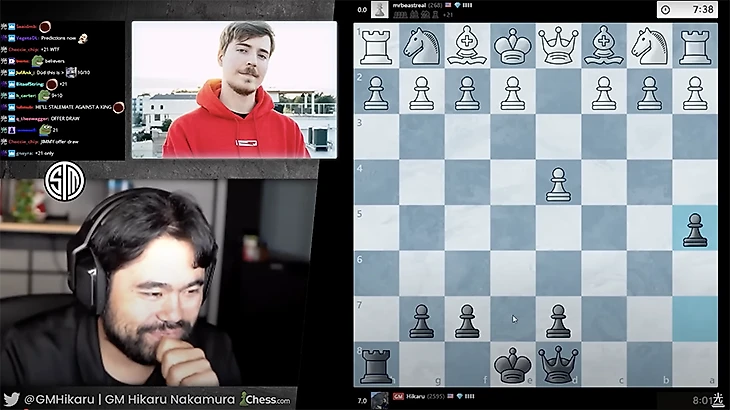 80. Звезда ютуба MrBeast проиграл вот такую партию Накамуре, который начинал игру с огромным гандикапом не в свою пользу – без более чем половины фигур.