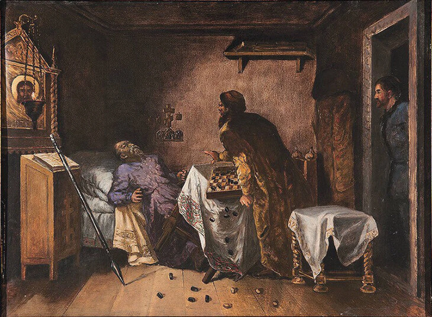 7. Иван Грозный, по одной из версий, скончался во время партии. Картина, на которой умирающий царь изображен с игровой доской, хранится в Музее шахмат в Москве.
