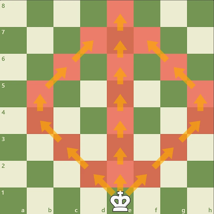 15. В шахматной геометрии путь по прямой и диагоналям от начала до конца доски может быть одинаково протяженным по количеству клеток.