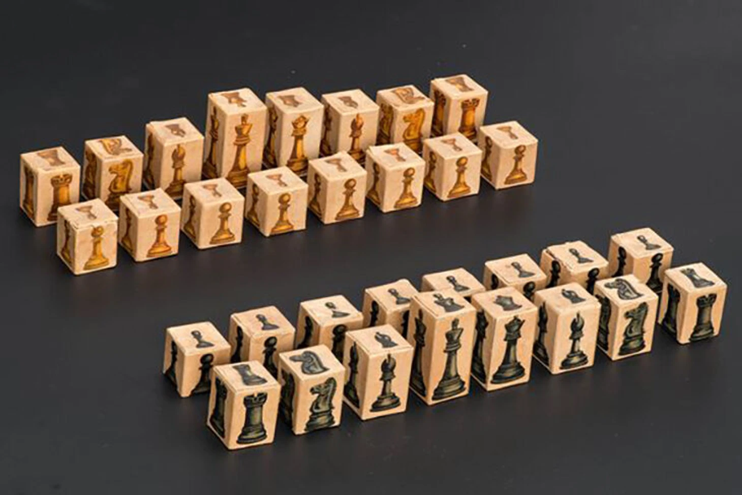 39. В блокадном Ленинграде не прекращались шахматные турниры, а на местном промкомбинате со временем начали выпускать фигуры в виде картонных кубиков, разрисованных тушью.