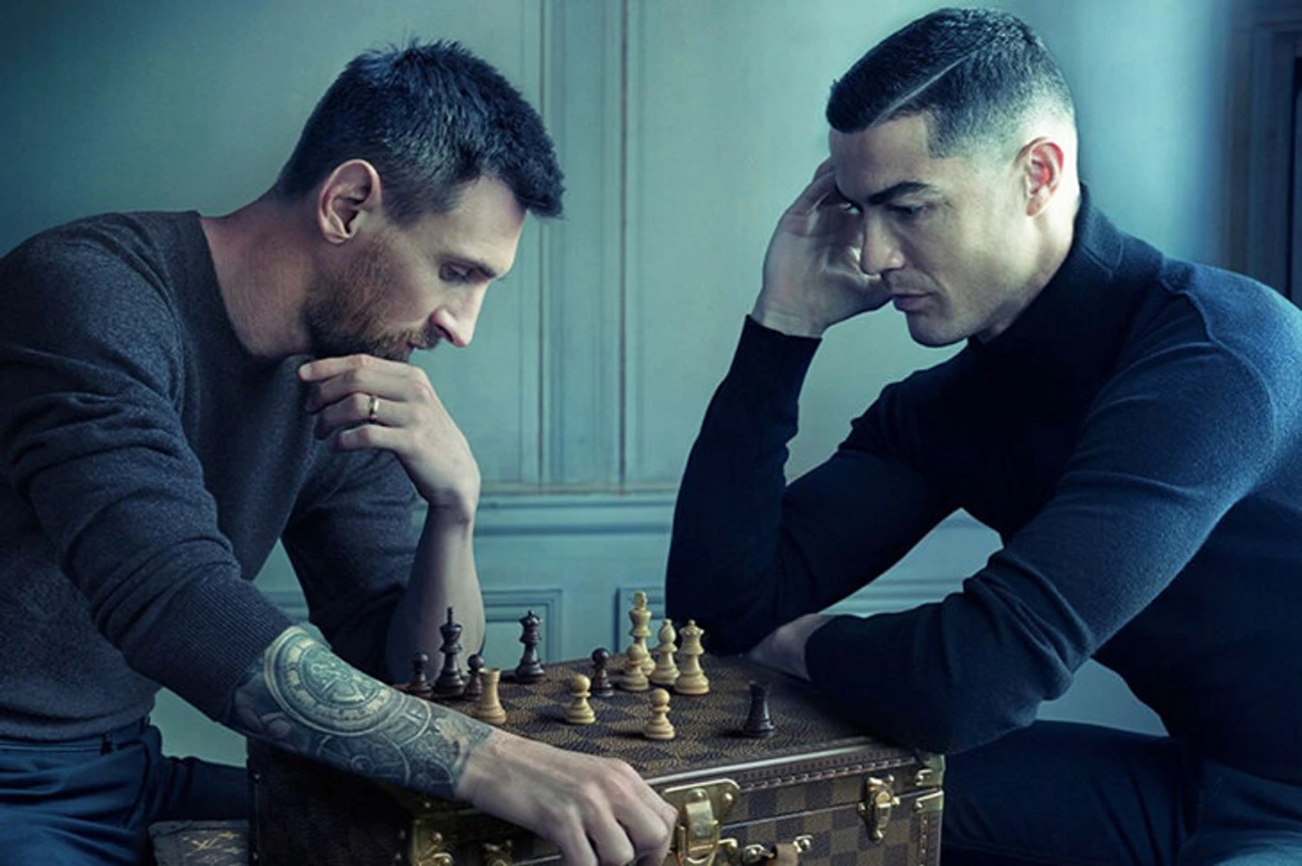 73. Лионель Мессии и Криштиану Роналду вместе появлялись за шахматной доской в рекламе Louis Vuitton. Правда, вживую на съемках они не пересеклись, и снимок пришлось подмонтировать.