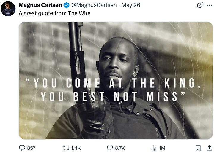Кстати, гроссмейстеры уже играли в первом туре, где легко победил Магнус. После победы он написал в соцсетях: