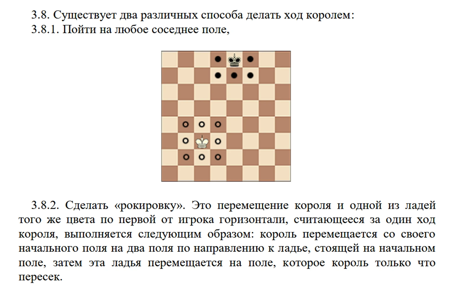 У короля есть два возможных хода — пойти на соседнюю клетку или же сделать «рокировку». Самое главное, что нужно помнить: «рокировка» — это ход короля. Поэтому совершается она всегда с короля, а не с ладьи. Когда рокировка выполняется с ладьи, невозможный ход не фиксируется, ладья оставляется на поле рядом с королем, если от нее была отпущена рука на данном поле и ход считается сделанным, партия продолжается. Казалось бы всё просто и обыденно.