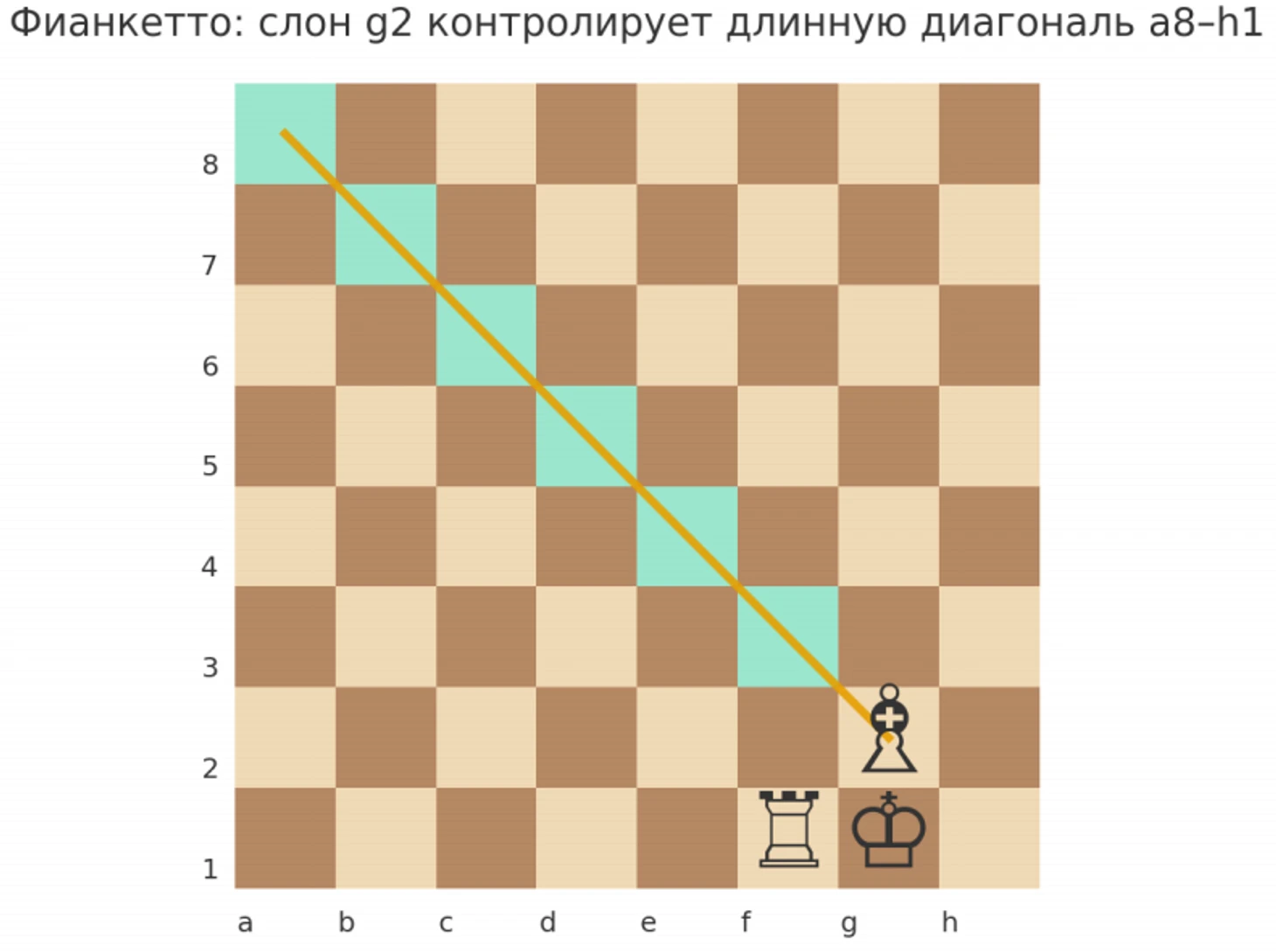 Фианкетто: постановка слона на g2/b2 (или g7/b7) раскрывает длинную диагональ и давление на центр/короля.