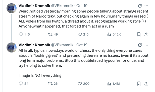 Крамник также допустил, что повлиять на Народицкого могла потеря комментаторской работы на Chess.com и Freestyle Chess.