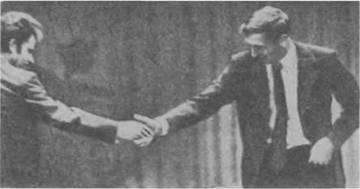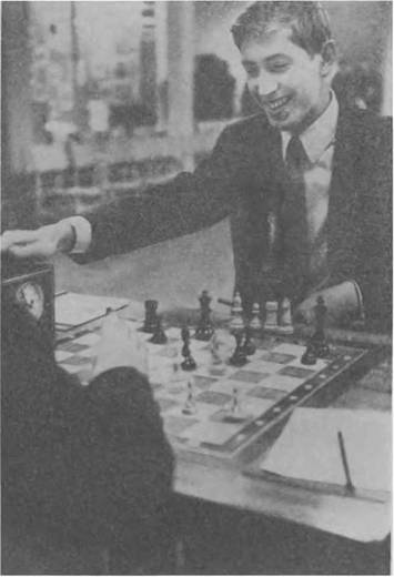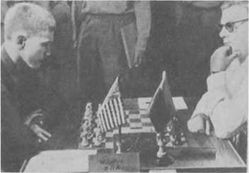 309. Бывшие соперники по матчу в Рейкьявике (1972) стали, как говорят, большими приятелями. Бывая в США, Спасский часто заезжает к Фишеру, а в Европе принимает его на правах гостеприимного хозяина. По признанию Б. Спасского, Фишер полысел и обзавелся брюшком, но по-ирежнему живет скудно и одиноко. (1991)