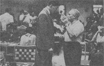 Блиц-чемпионат мира. Р. Фишер и Д. Бронштейн в перерыве между турами