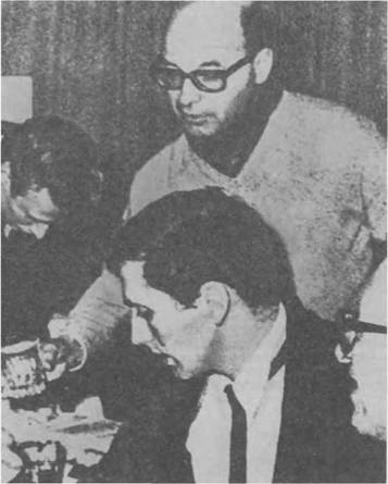 Сообща стали вспоминать ходы партии, сыгранной тринадцать лет назад. В этом состязании памяти впереди был Фишер – он привел столько фрагментов, что вызвал всеобщее удивление. (1975)