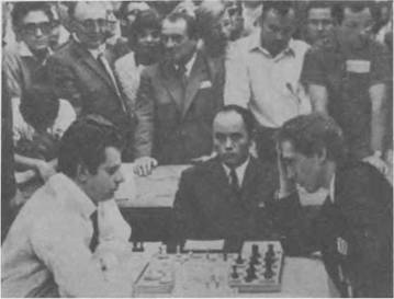 Спасский – Фишер… Ни одна другая партия Олимпиады не ожидалась с таким нетерпением и интересом. «Жарче споры вокруг демонстрационных досок, – вспоминал М. Бейлин, – предгрозовая духота в зале… В борьбе произошел перелом, понятый всеми зрителями, – Спасский оказался сильнее»