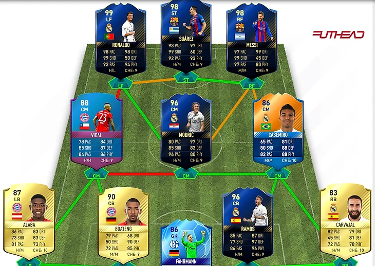 Вот мы получаем подобную команду, которая наиболее хорошо подоидет под эту уикенд лигу, ибо в лалиге нету достаточного количества годных дешовых игроков.