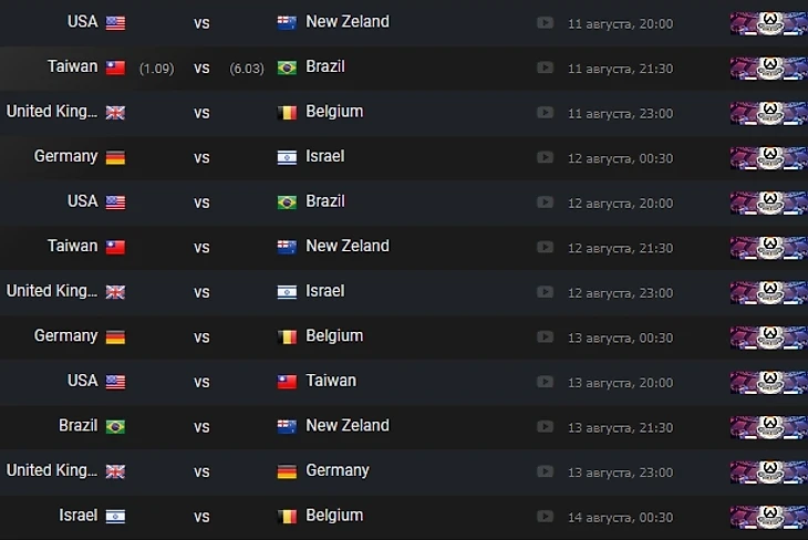 В той же группе будет выступать сборная Китайского тайбэя (Тайвань) (14), полностью укомплектованная игроками команды "Flash Wolves", которая недавно выиграла тихоокеанский чемпионат "Overwatch Pacific Championship", с достаточно внушительным призовым фондом - 272240$. Команда сыграла 30 игр, проиграв всего 3, а в финале разобралась в двухматчевом противостоянии с общим счетом 8:2. Фaктически это был матч сборной Тайваня со сборной Австралии, игроки которой представляют команду "Blank Esports". Австралийцы уже завоевали свой слот на BlizzCon, что покажет Тайвань?