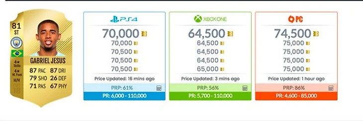 Рейтинги. Я конечно не эксперт, но разве это нормально, что 90% коммьюнити, покупая Кавани, Фалькао или, например, Ибрагимовича, заведомо знают, что они будут играть хуже, чем Рэшфорд, Жесус и Кинг? Неужели это не дискредитирует сам процесс подбора игроков в свою команду и распределение рейтингов, если в режиме FUT, футболист с рейтингом 79 стоит 100 тысяч монет, а футболист с рейтингом 86 – 1000.
