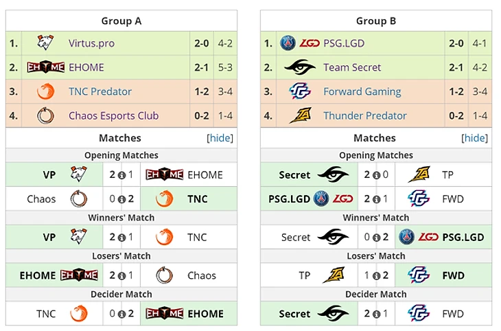 В целом хочется отметить не очень высокий уровень игры в первый день. Возможно, команды только разминаются перед предстоящими играми на вылет. Но многочисленные ошибки оставляют осадок от просмотренных матчей: 3я карта VP vs EHOME. Китайцы отбиваются из последних сил, но их Anti-Mage, видимо, уверен, что нажимать BKB - плохая идея, а давать Abyssal в Lotus Orb - хорошая.