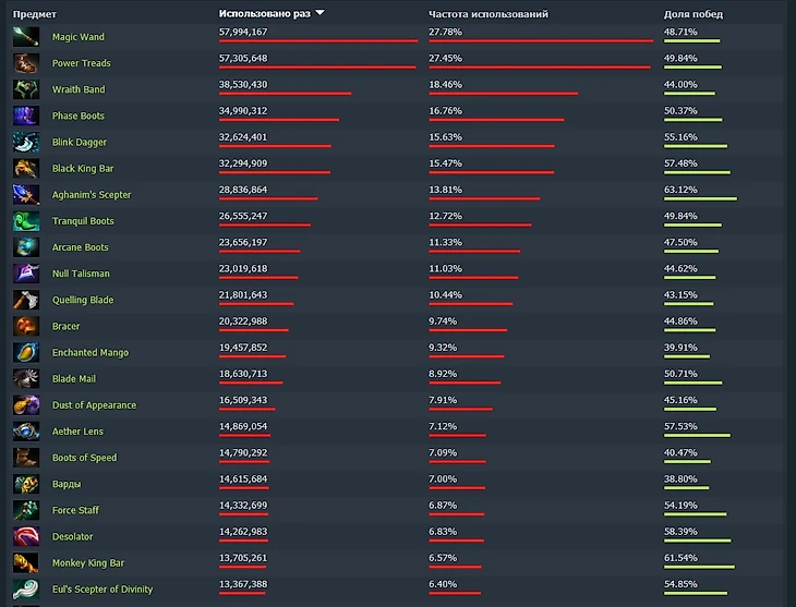 И так что нам это дало? да ровным счетом данный фикс вообще ни как не повлиял на имбовость МКБ. Сейчас данный предмет по популярности в качестве кор-предмета уступает разве что Дезолятору но при этом очень сильно обгоняет его по винрейту: