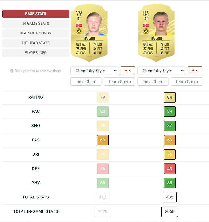 Зимний апгрейд с 73 до 79 понятен. Игрок, который на взрослом уровне забивал в чемпионате Норвегии и квалификации Лиги Европы (держим в уме 9 мячей, забитых в ворота сборной Гондурас U-20) начинает крушить всех в австрийской Бундеслиге (16 забитых мячей в 14 матчах) и в Лиге Чемпионов (8 мячей (!!!) в 6 матчах. Далее следует переход в дортмундскую Боруссию, где обороты Эрлинг сбавлять не собирался (забивает 13 голов и отдает 2 результативные передачи в 15 матчах (при этом 4 матча со скамейки запасных)).