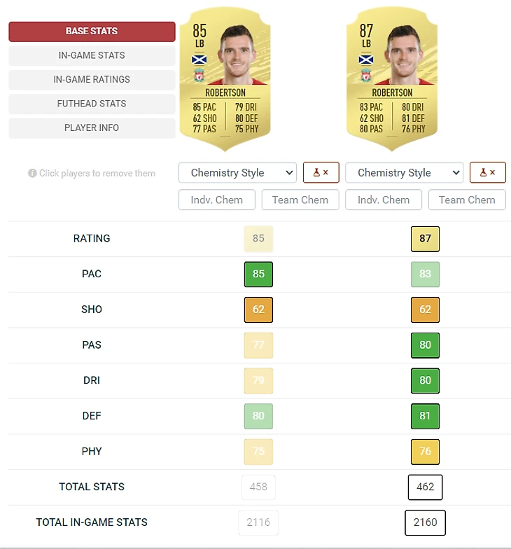 Вывод: Энди Робертсон провёл сезон на уровне прошлого сезона. Апгрейд рейтинга я считаю справедливым, т.к игра одного из лучших левых защитников мира сезона 18/19 и 19/20 должна оцениваться выше рейтинга 85 в FIFA.