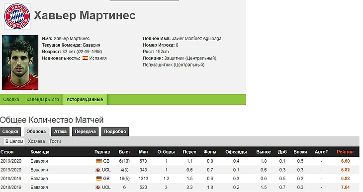Вывод: Заслужил ли Хавьер даунгрейд на 3 пункта? Я считаю, что нет. В целом даунгрейд заслужен, но максимум на 1-2 пункта, т.к. сезон 19/20 провёл фактически на том же уровне, что и сезон 18/19 за исключением количества игр, но тут уже вопрос к великолепному ростеру Баварии в полузащите сезона 19/20.