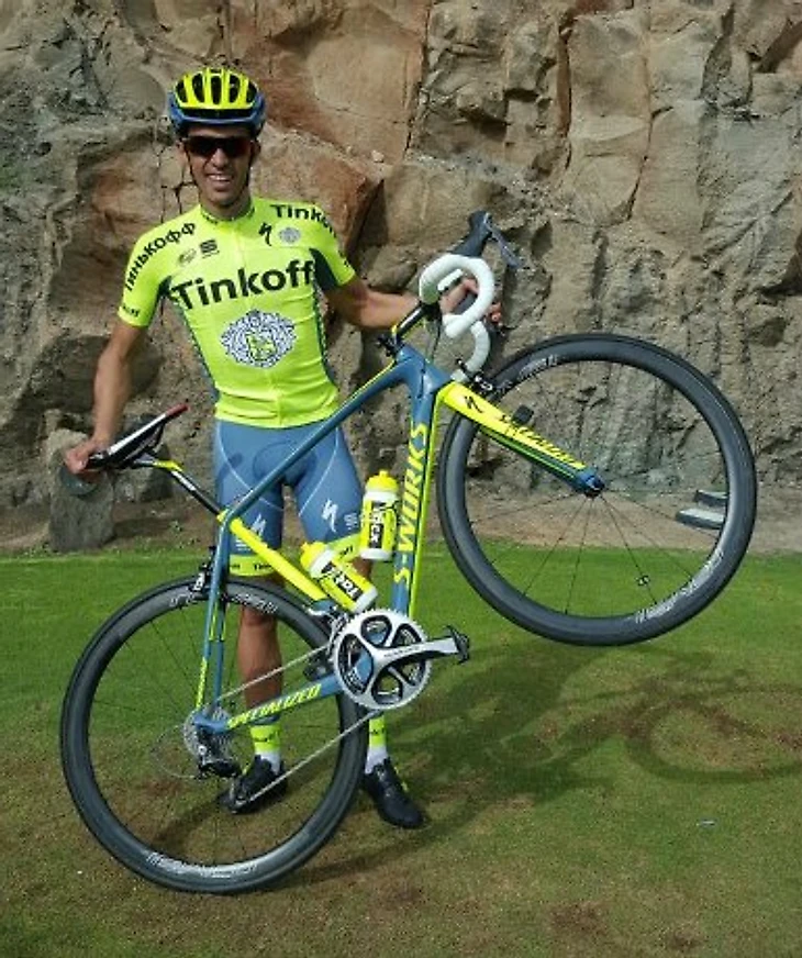 Форма выполнена в желто-синих цветах, надписи сделаны черным цветом. В своем твиттере испанский велогонщик Альберто Контадор также опубликовал фотографию новой формы с тренировки.