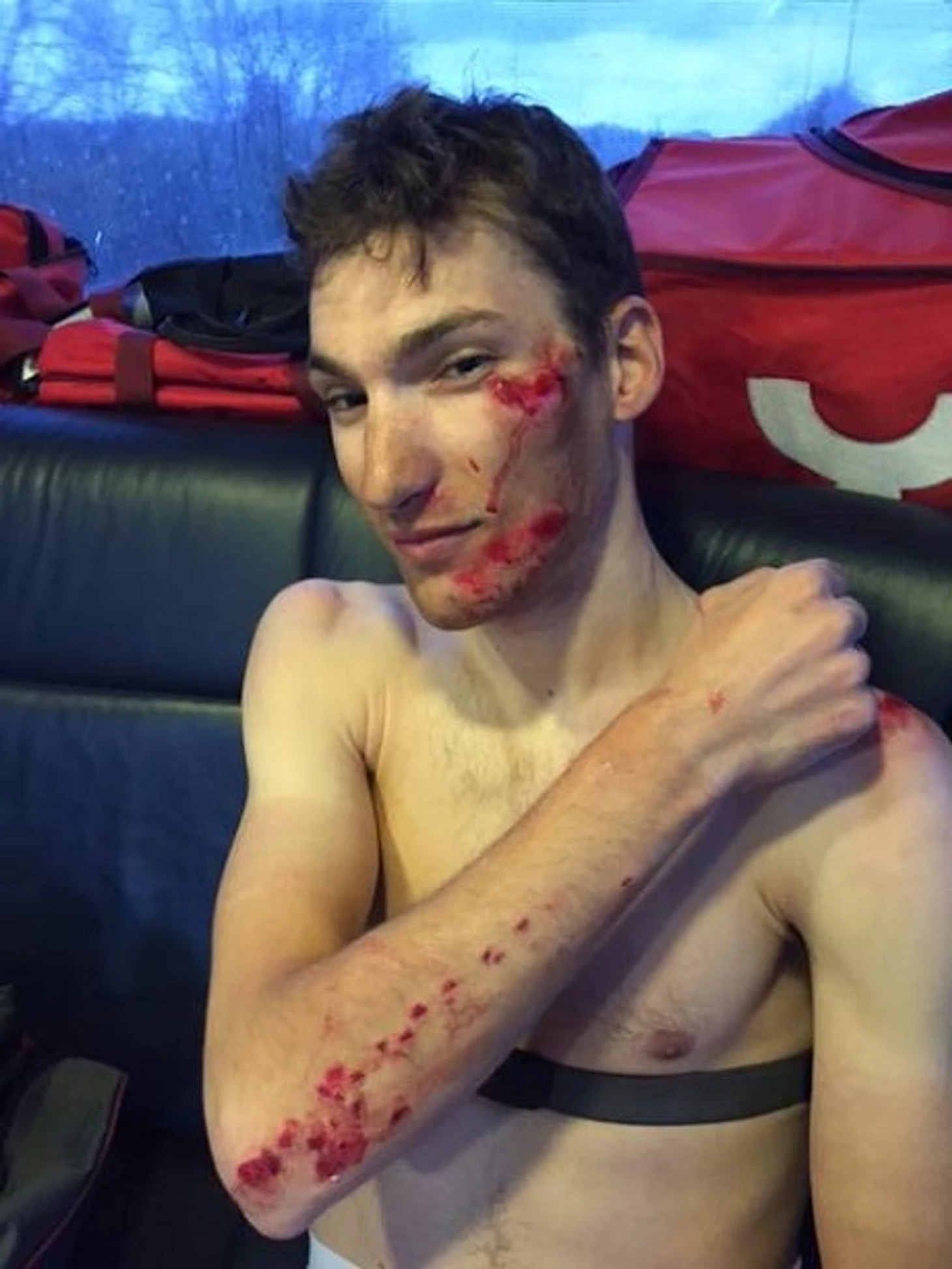 Инцидент произошел через 500 метров после старта гонки. Бистрем ударился головой, получил ушибы плеча и колена, а также многочисленные ссадины.