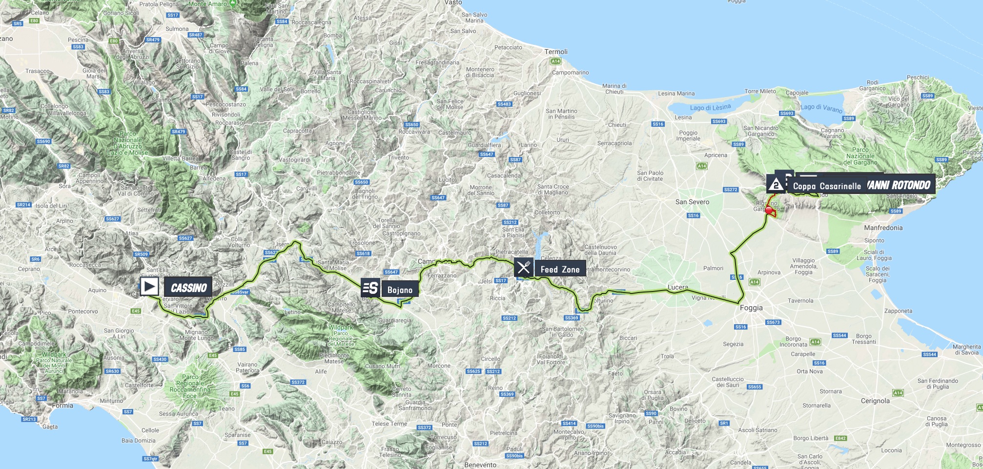 1. Фаусто Маснада (Италия, Androni Giocattoli – Sidermec) – 5.45,012. Валерио Конти (Италия, UAE-Team Emirates) – 0,053. Хосе Хоакин Рохас (Испания, Movistar) – 0,384. Рубен Пласа (Испания, Israel Cycling Academy) – то же время5. Джованни Карбони (Италия, Bardiani – CSF) – 0,436. Петер Серри (Бельгия, Deceuninck – Quick Step) – 0,54...9. Андрей Амадор (Коста Рика, Movistar) – 0,57...11. Сэм Оомен (Голландия, Sunweb) – 1,03...17. Примож Роглич (Словения, Jumbo-Visma) – 7,1918. Саймон Йейтс (Великобритания, Mitchelton-Scott)...23. Боб Юнгельс (Люксембург, Deceuninck – Quick Step)...26. Мигель Анхель Лопес (Колумбия, «Астана»)...30. Диего Улисси (Италия, UAE-Team Emirates)...36. Павел Сиваков (Россия, INEOS)...49. Винченцо Нибали (Италия, Bahrain Merida)50. Бауке Моллема (Голландия, Trek-Segafredo)...52. Рафал Майка (Польша, Bora-Hansgrohe)...57. Давиде Формоло (Италия, Bora-Hansgrohe)...59. Микель Ланда (Испания, Movistar)60. Ильнур Закарин (Россия, Katusha-Alpecin)...62. Вячеслав Кузнецов (Россия, Katusha-Alpecin)...164. Дмитрий Страхов (Россия, Katusha-Alpecin) – 23,08