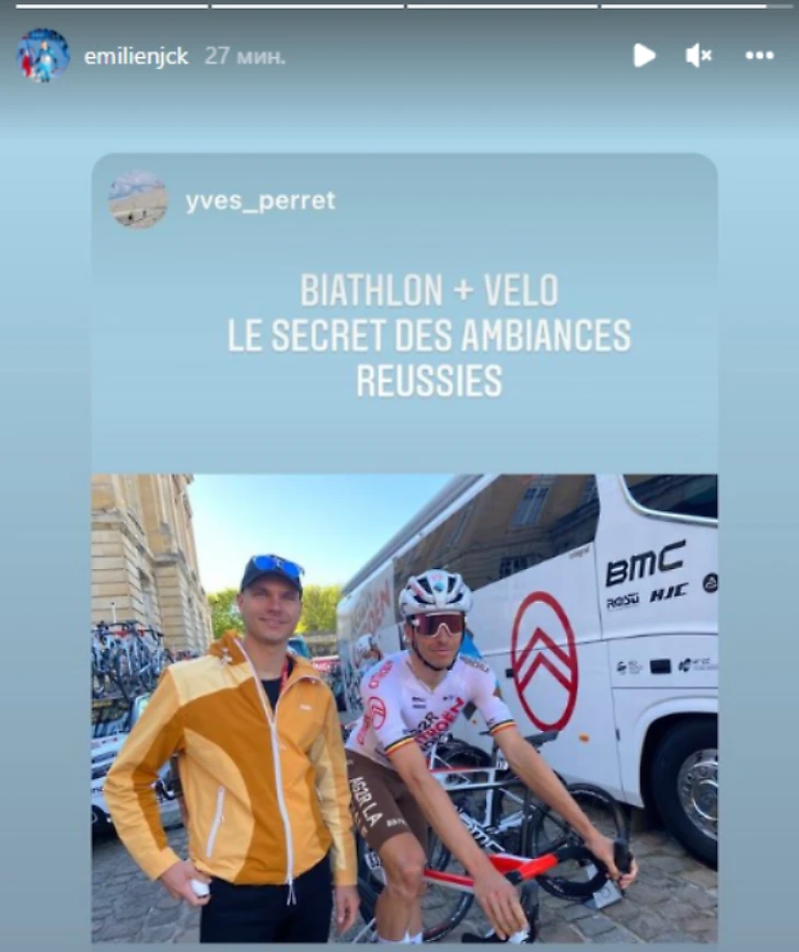 Биатлонист Эмильен Жаклен посетил велогонку «Париж – Рубэ»