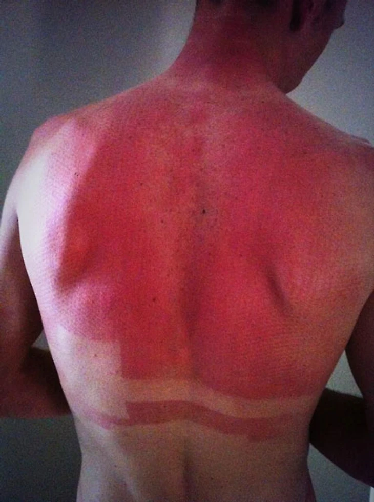 Британский велогонщик Sky Кристофер Фрум получил солнечные ожоги спины во время тренировки в Южной Африке.