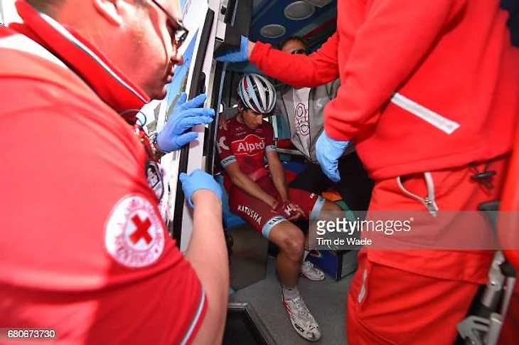 Итальянский велогонщик упал за 80 км до финиша и смог!