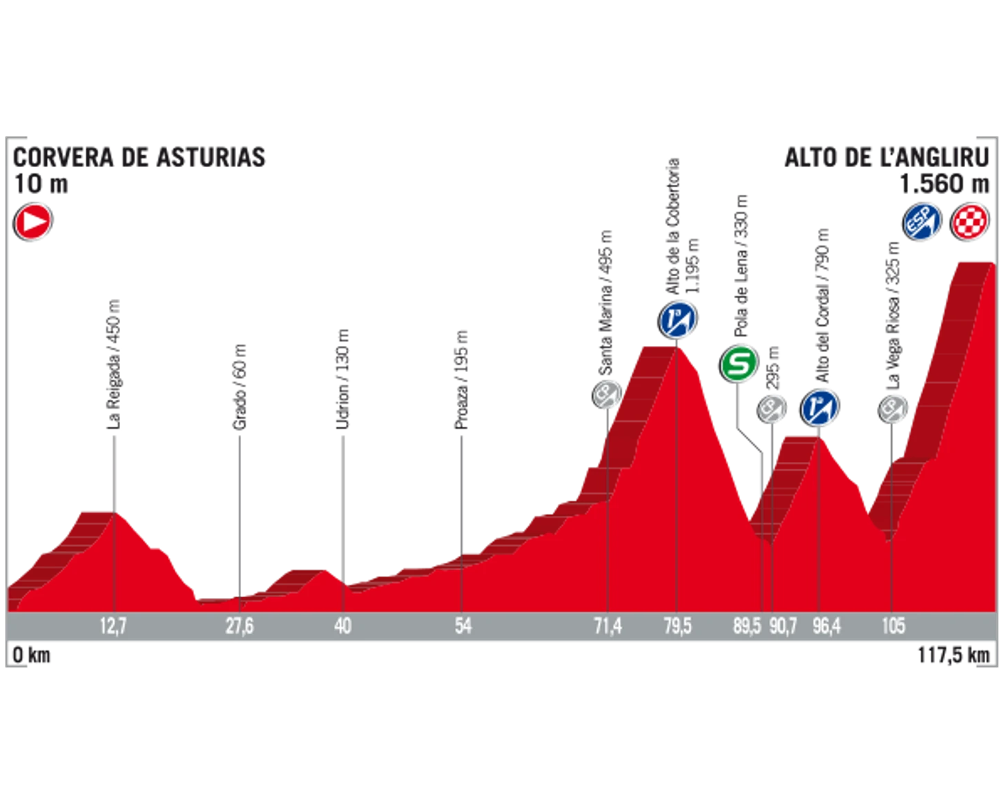 И, разумеется, на десерт, запакованный в обертку 20-го этапа, оставили штурм Англиру. Вуэльта не приезжала сюда с 2013 года, когда безумную свистопляску устроили Нибали и Хорнер. С тех пор, возможно, самая легендарная гора в мире велоспорта точно не стала легче (Альберто, повтори, пожалуйста, то, что ты сделал в 2008 году. И плевать, что сейчас у тебя на плечах другая майка). В этот раз организаторы определенно задумали превратить этап во что-то эпично-легендарное. Сам по себе подъем на Англиру они предваряют штурмом двух вершин первой категории сложности. Все это на 117,5 км. Представьте себе лицо Маресля Киттеля на этих дорогах и вы тоже придете к выводу, что ни один нормальный спринтер точно не приедет на Вуэльту, все равно до Мадрида не доберется. Не впишется в лимит времени.