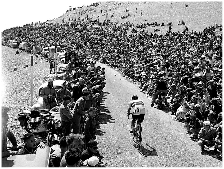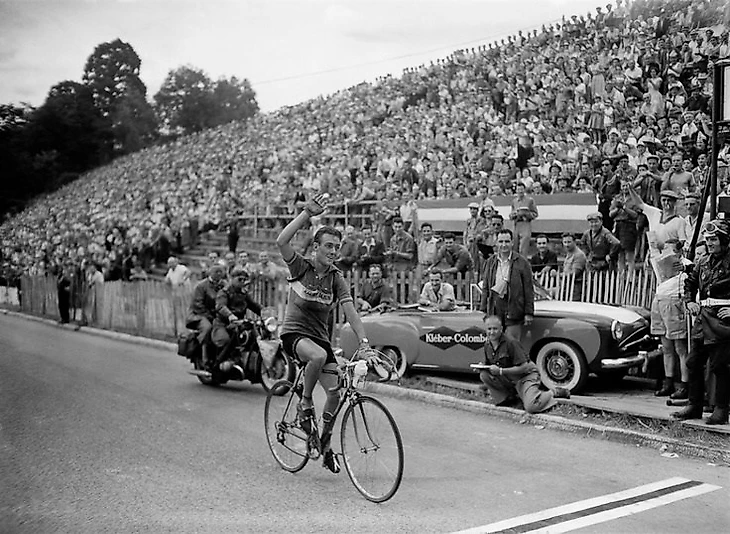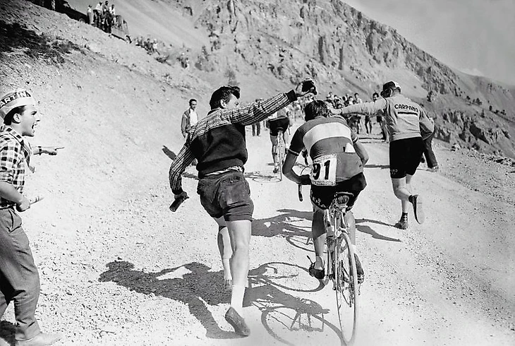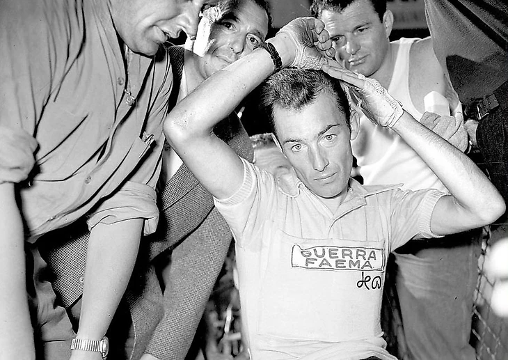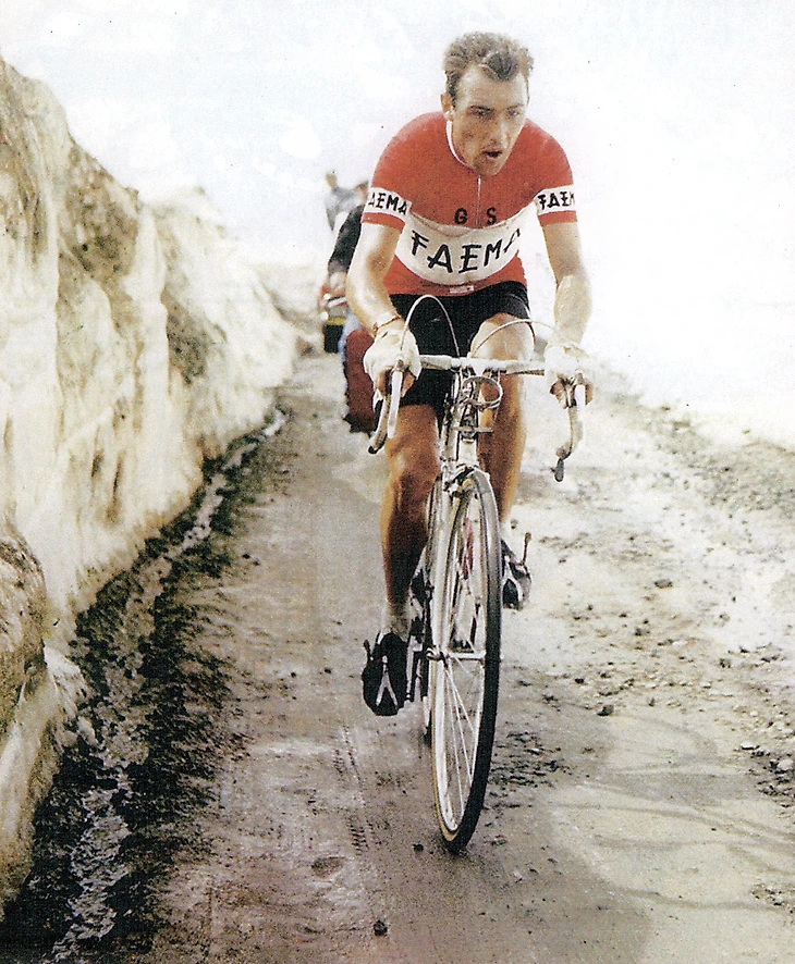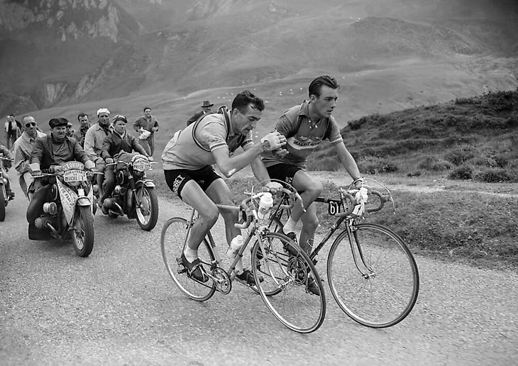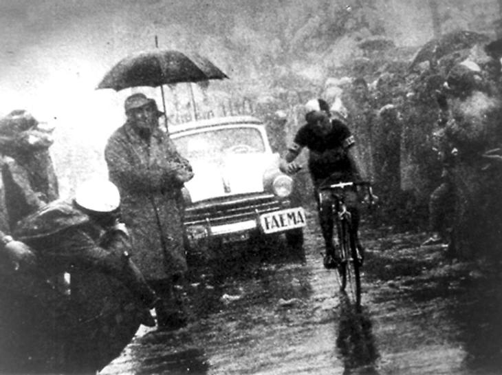 Я уже писал про Flahute – суровых бельгийских парней, умеющих гонять в ненастную погоду. Люксембуржец Шарли Голь (Charly Gaul) по прозвищу «Ангел гор» не просто умел гонять в дождь и снег в горах – чем хуже было погода, тем лучше он проявлял себя. Обе его победы на Джиро (1956 и 1959) и на Туре 1958 года были крайне драматическими и невероятно эффектными.