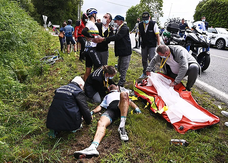 «Тур де Франс»-2021, в отличие от предыдущего, стартовал со зрителями – и те сразу сочинили для команд массовую аварию.